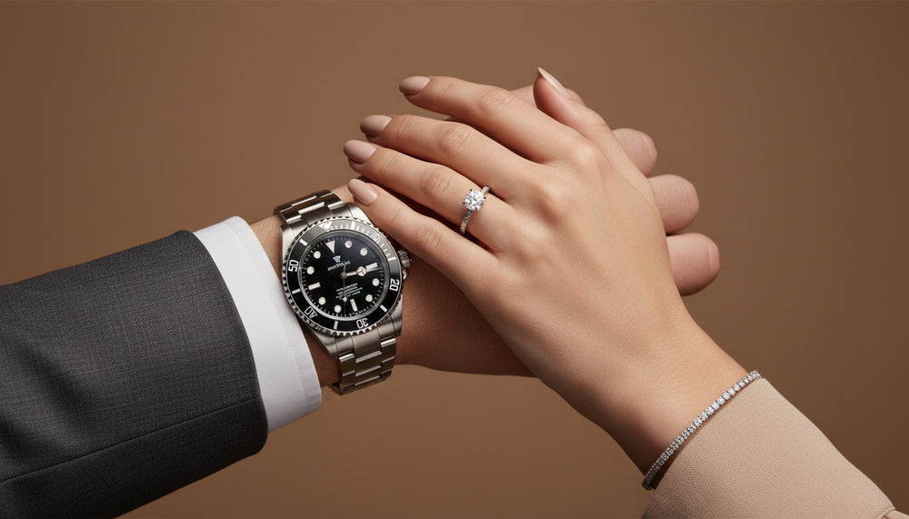 Some couples go for obvious coordination. We prefer the quiet kind — a shared tone, a considered detail, an effortless balance. The simplest formula is still the strongest: his watch, her jewellery. Not identical pieces. Just a pairing that feels intentional.