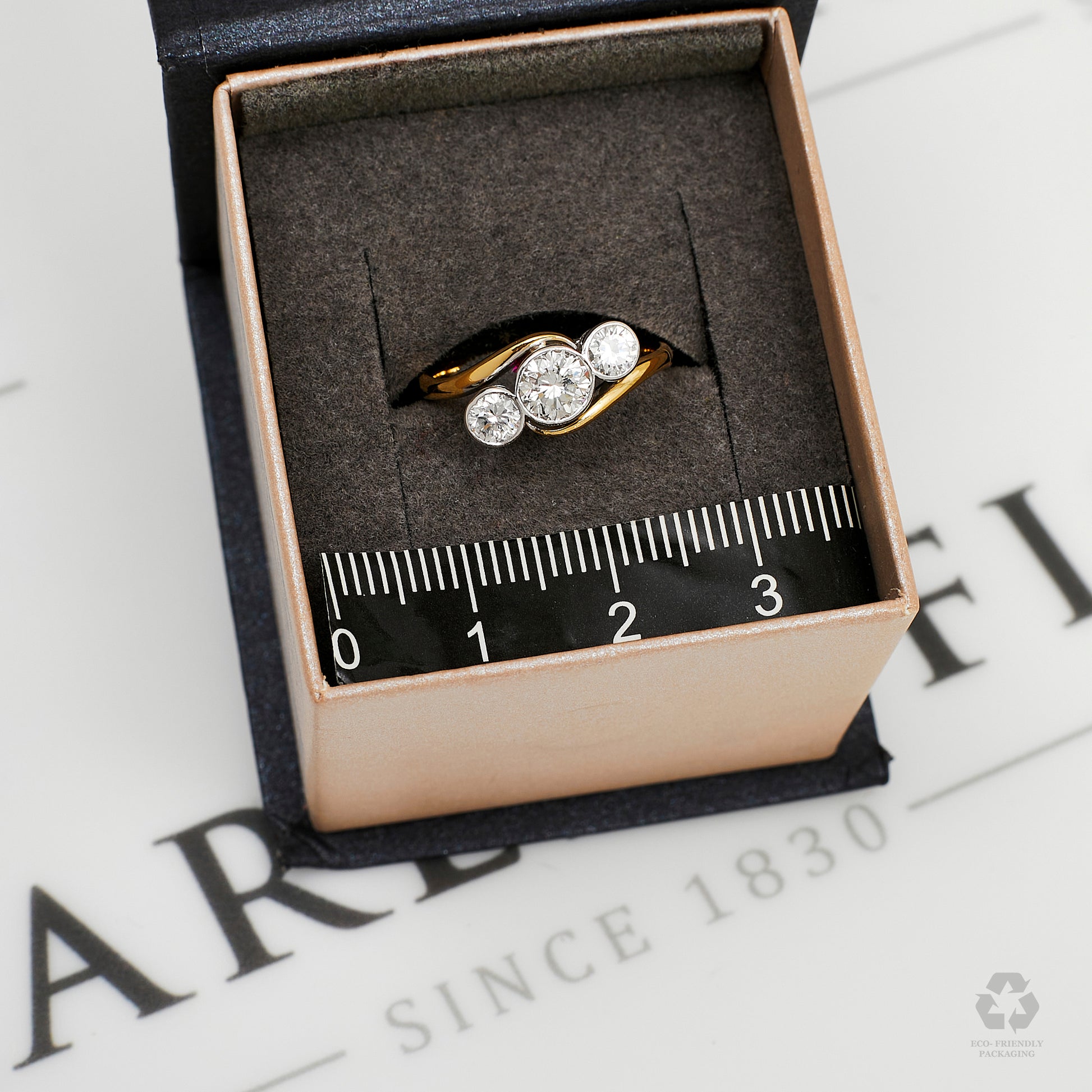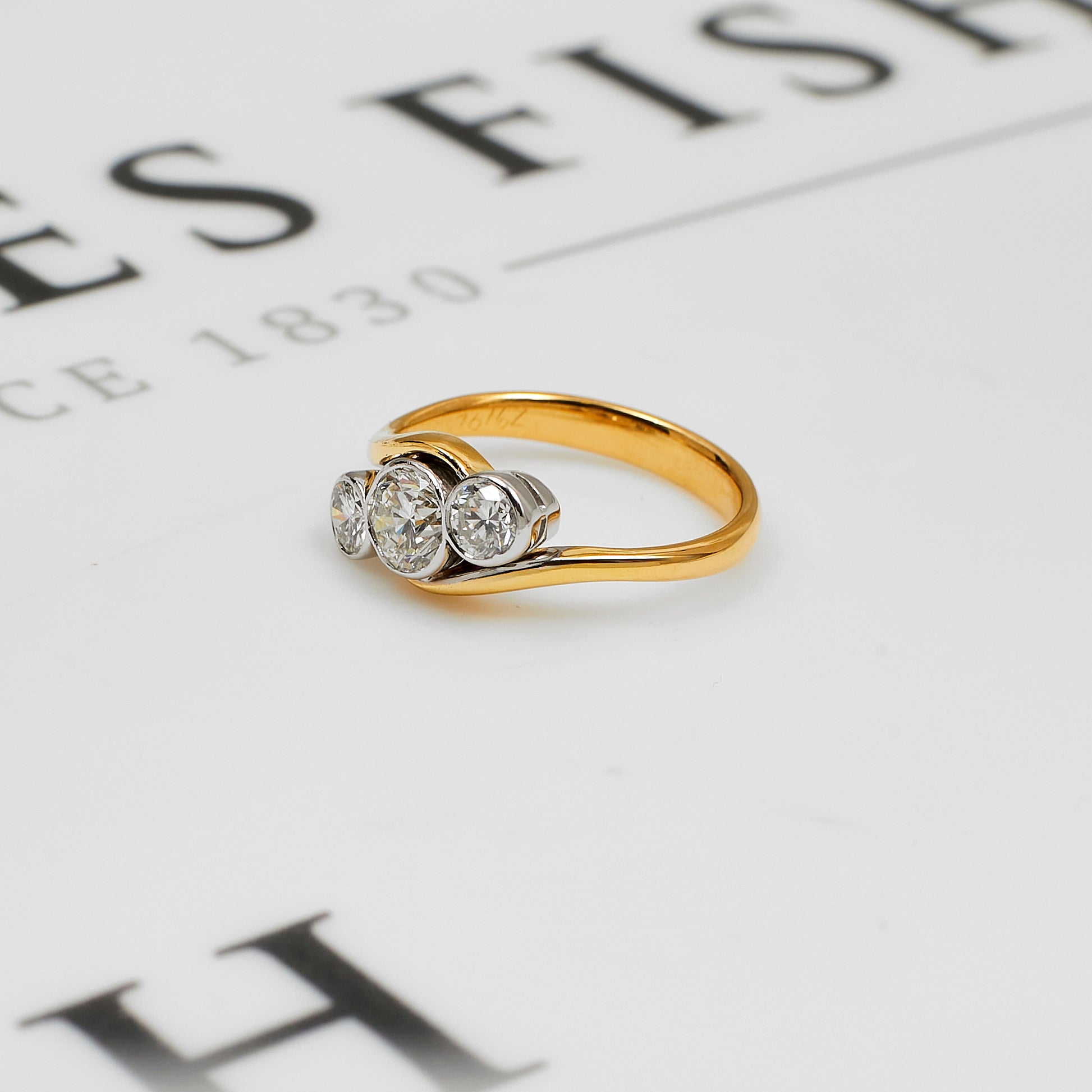 Pre-Owned 18ct Gold 3 Diamond Twist Design Ring Size G