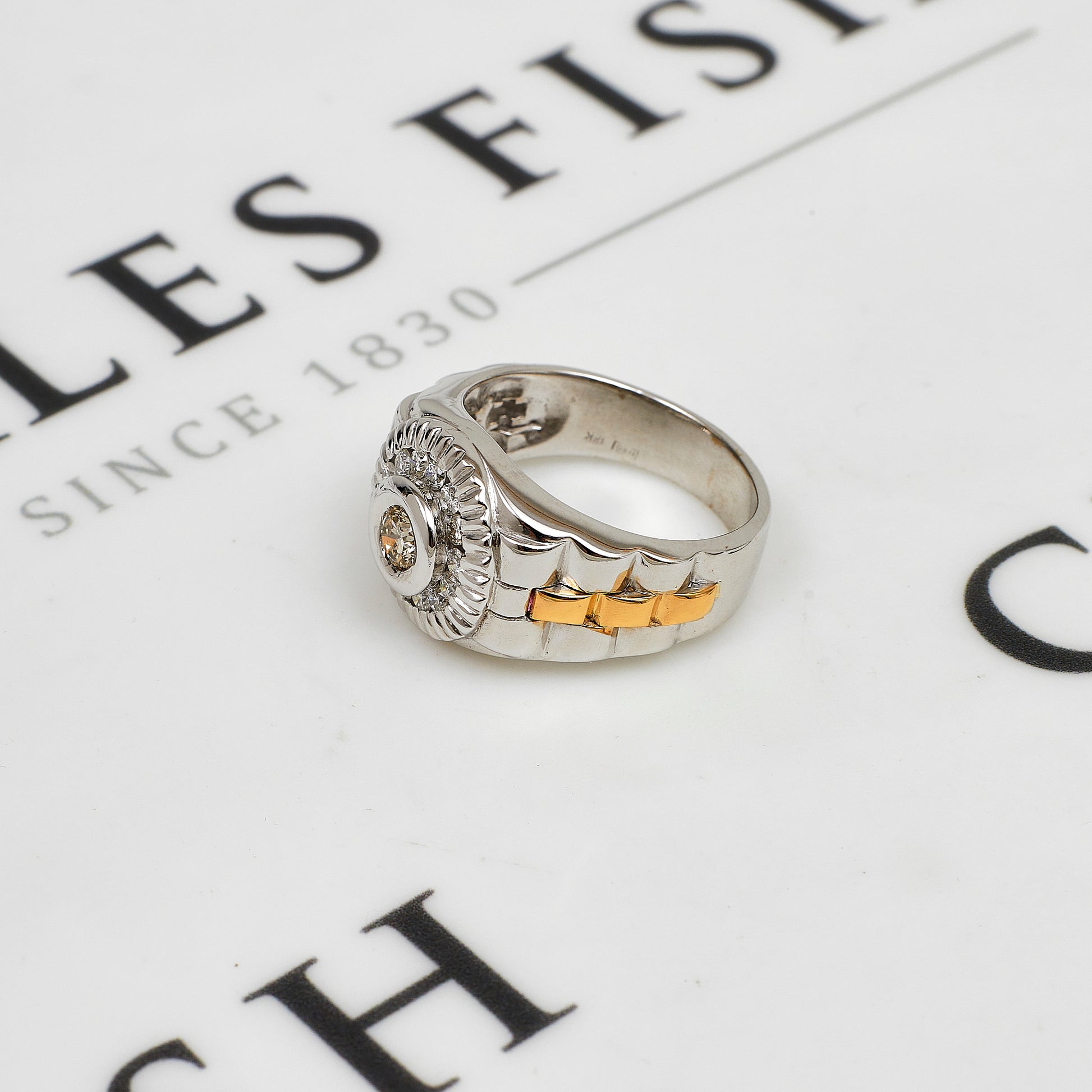 Pre-Owned 18ct Gold Mens 2 Tone Diamond Cluster Ring Size V