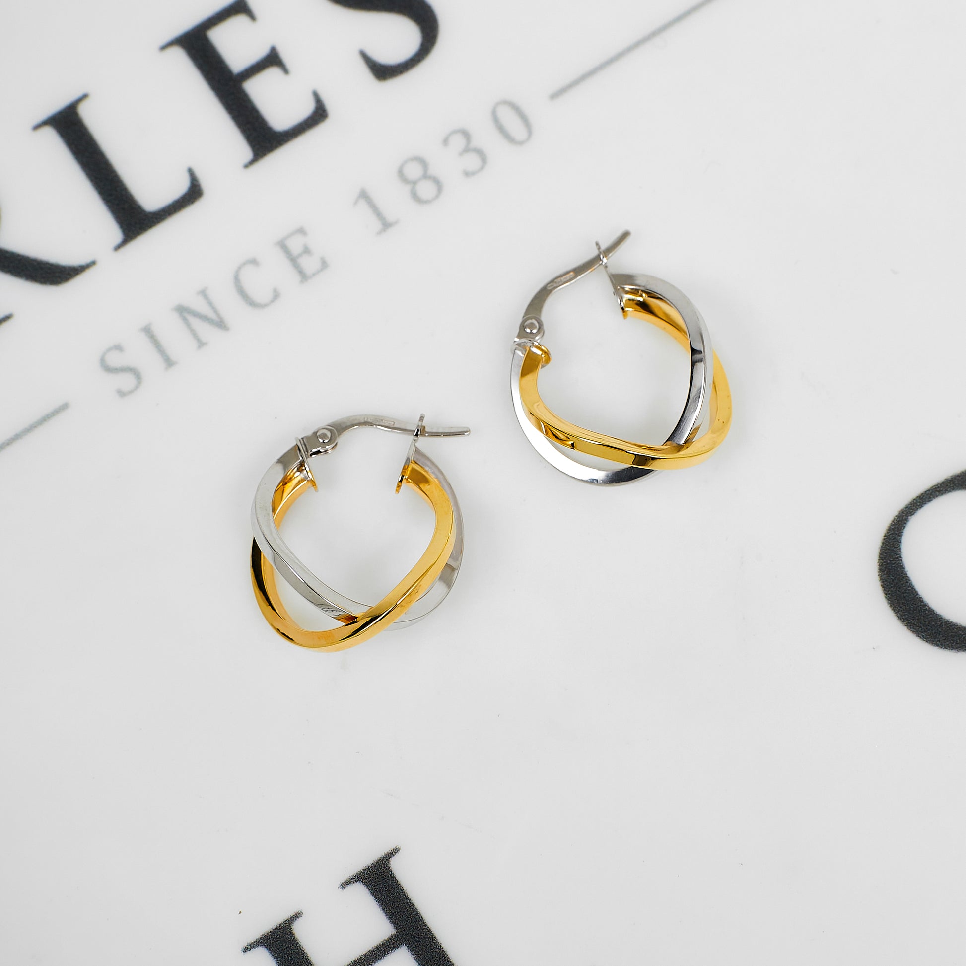 Pre-Owned 9ct Gold 2 Tone Crossover Creole Hoop Earrings