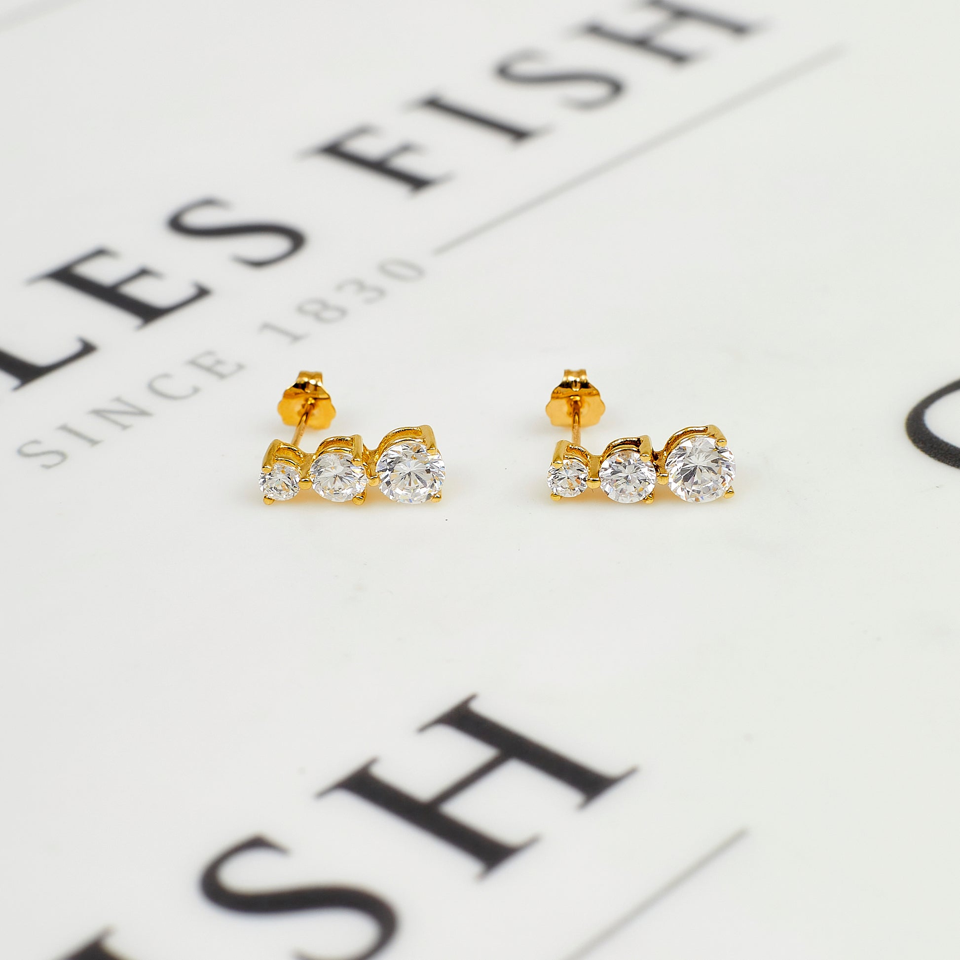 Pre-Owned 9ct Gold 3 CZ Stud Earrings