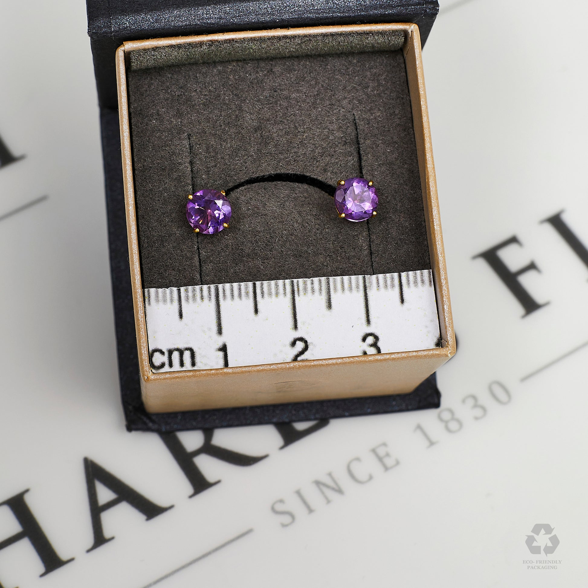 We love the delicate styling of these stunning 9ct gold stud earrings, each of which features a gorgeous purple-hued amethyst. Pre-owned, sustainable and a unique listing, we predict these will go fast, so if you love them - make them yours today. DETAILS: These sparkling earrings measure 6mm x 6mm and weigh 0.70 grams in total. They have been designed for pierced ears and have scroll/butterfly backs so you know they’ll stay put wherever you’re headed. We take great care to ensure our pre-owned jewellery pieces are carefully polished to the highest standard so they look as good as new. This second-hand item comes fully hallmarked, with a certificate of authenticity and eco-friendly packaging, ensuring customers can be confident in the value of their new purchase.