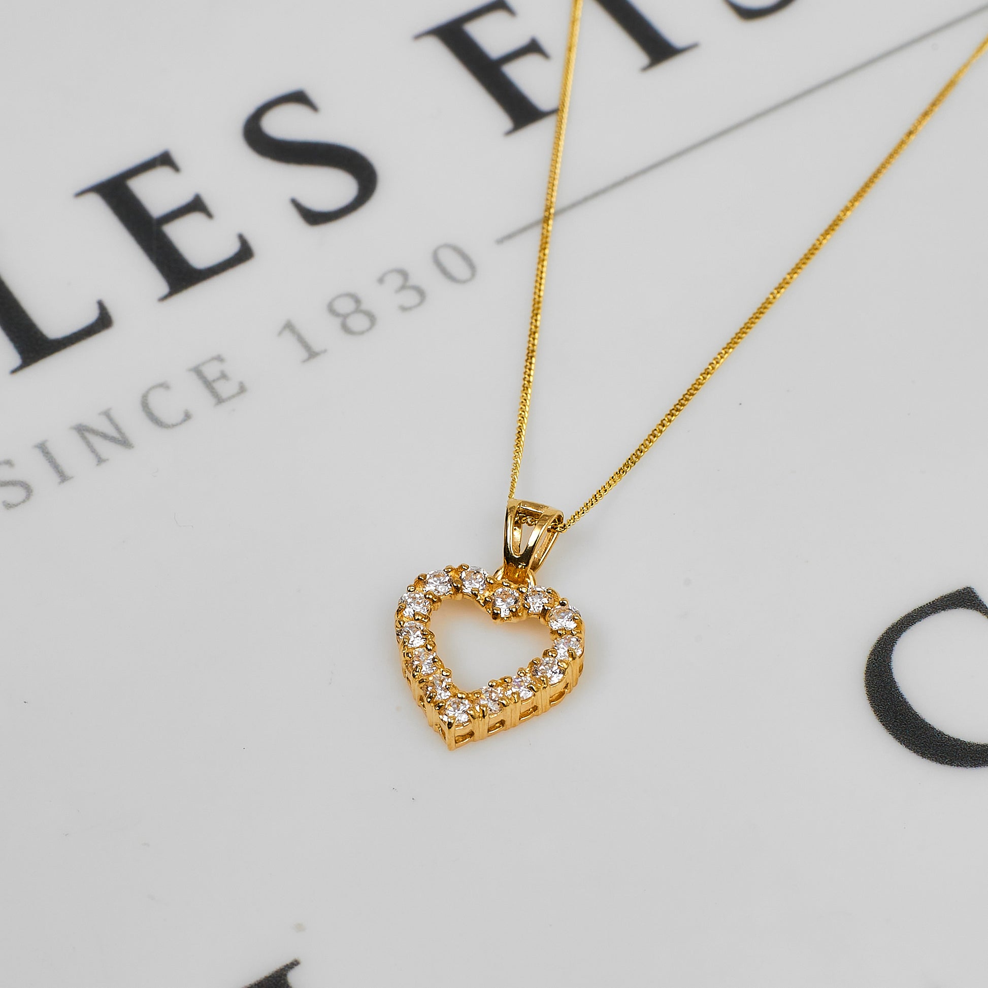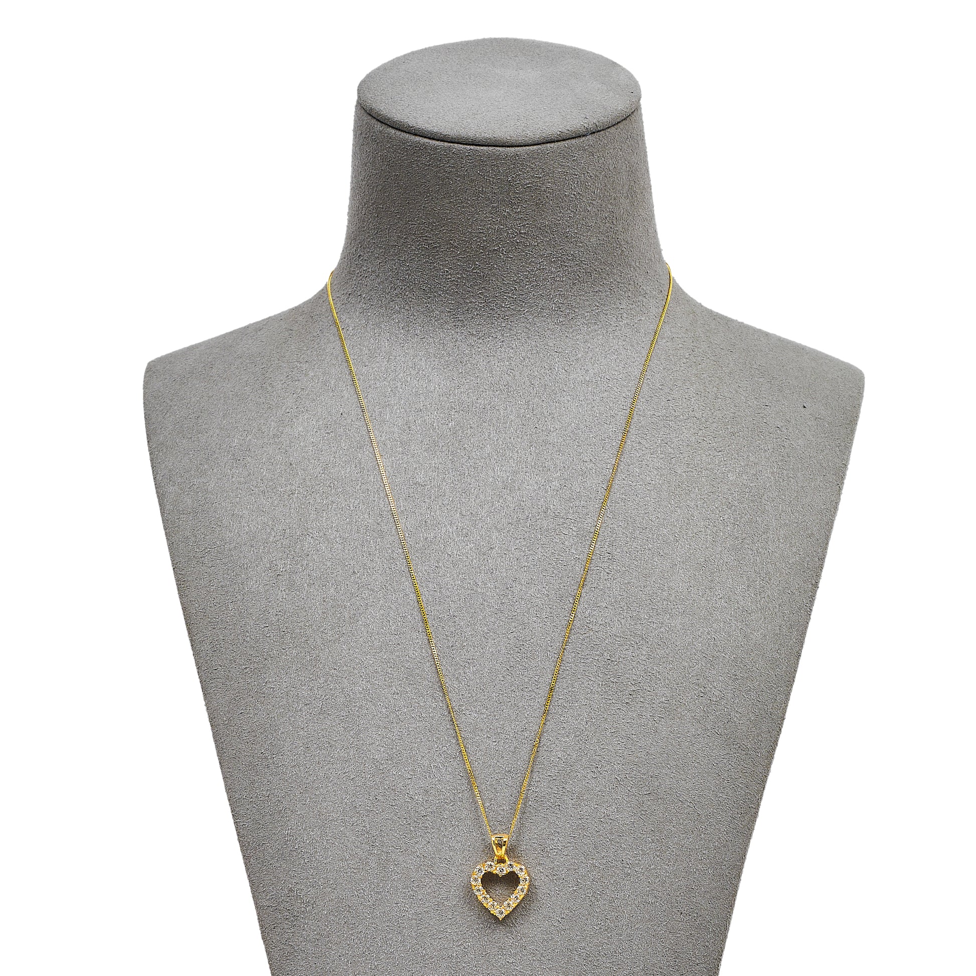 Pre-Owned 9ct Gold CZ Heart Pendant & Chain 18 Inch