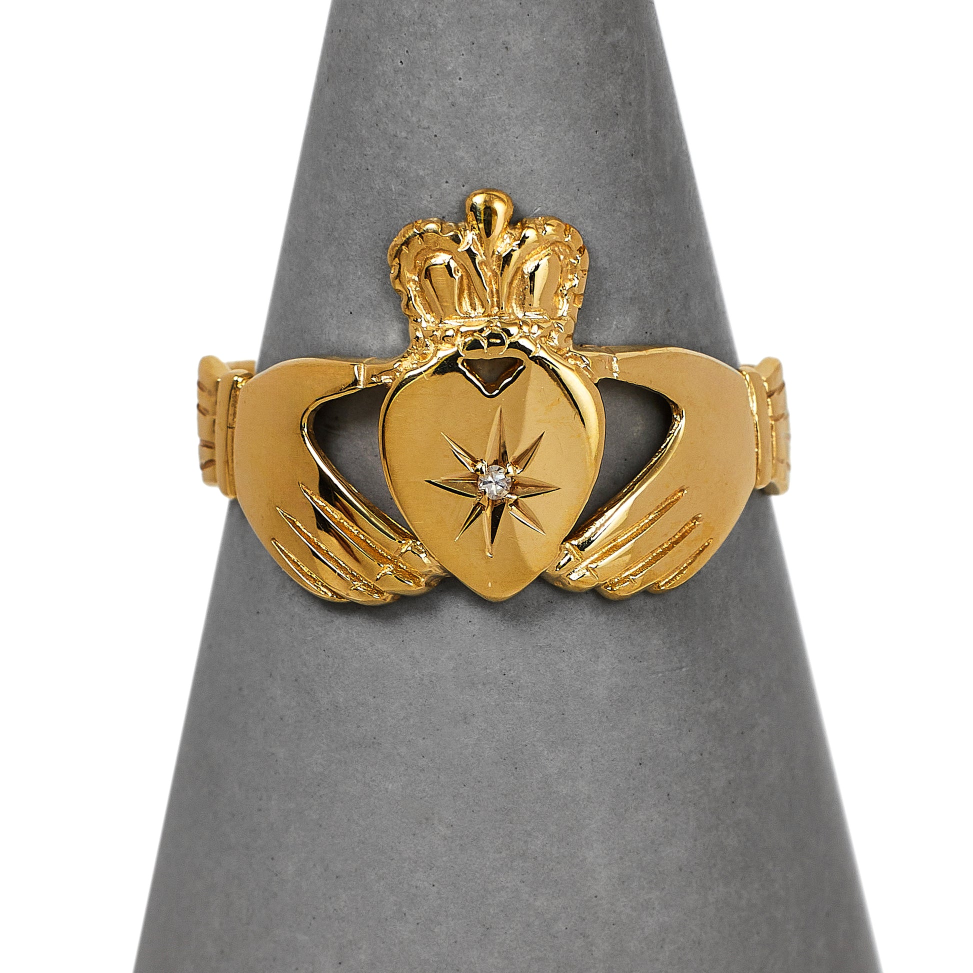 Pre-Owned 9ct Gold Diamond Claddagh Ring Size S.5