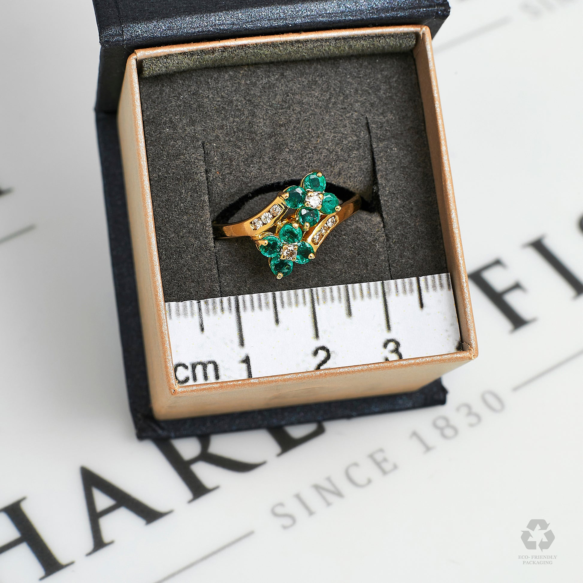 Pre-Owned 9ct Gold Diamond & Emerald Cluster Crossover Ring