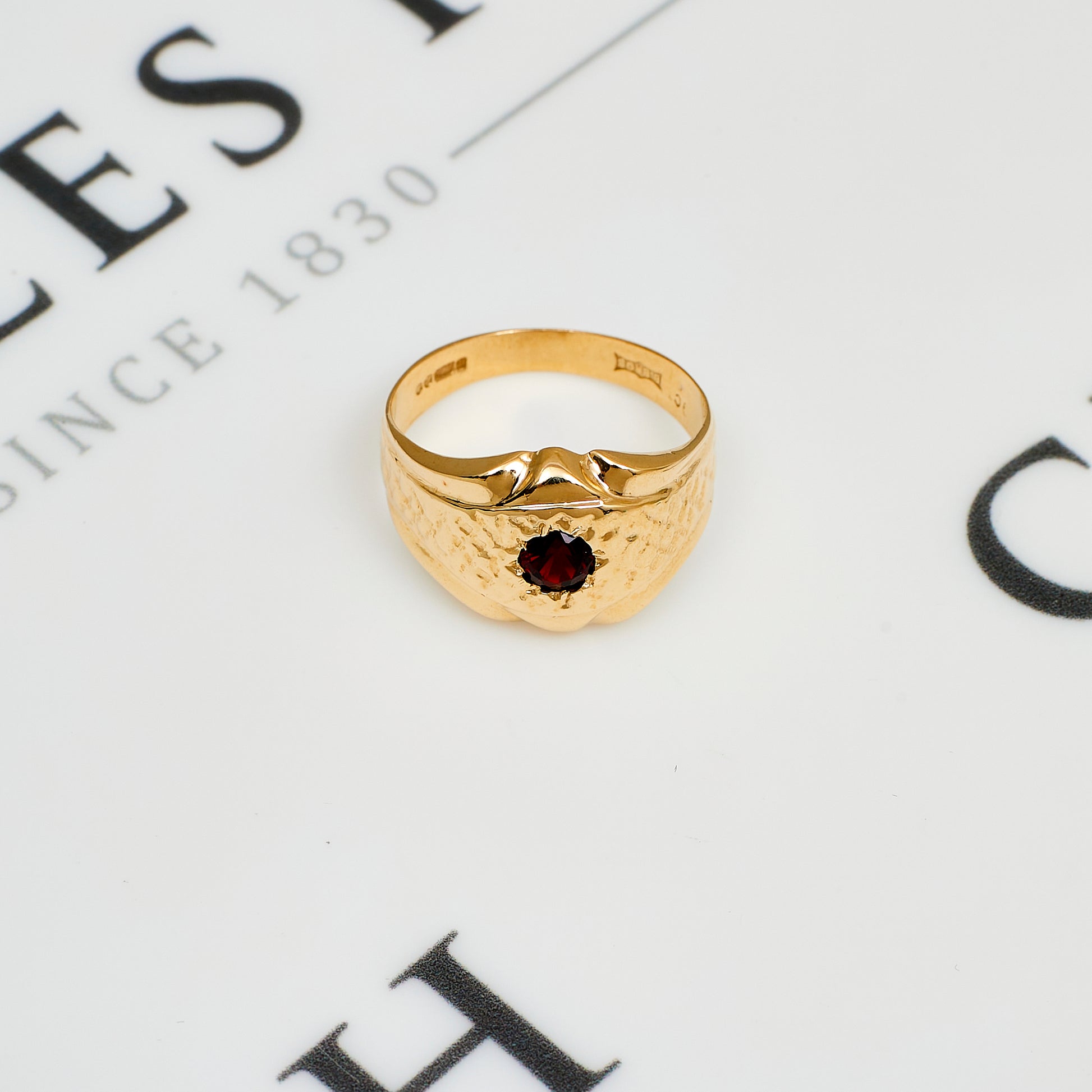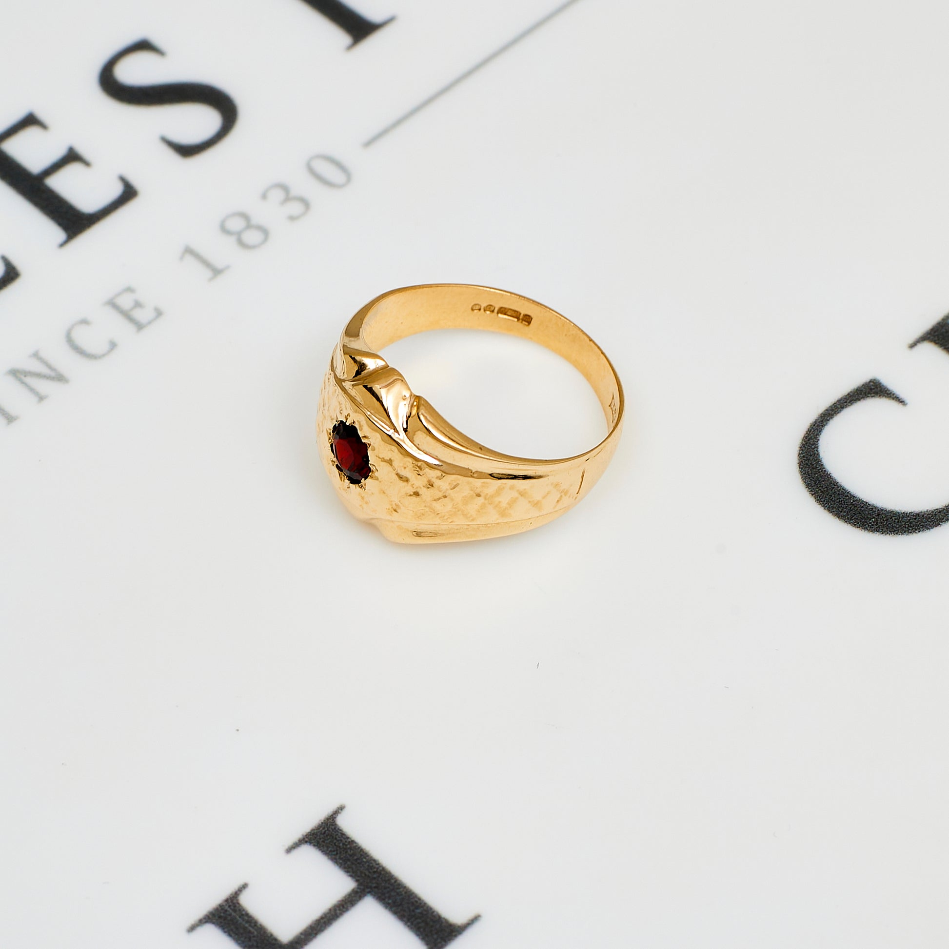 Pre-Owned 9ct Gold Garnet Mens Dress Ring Size U