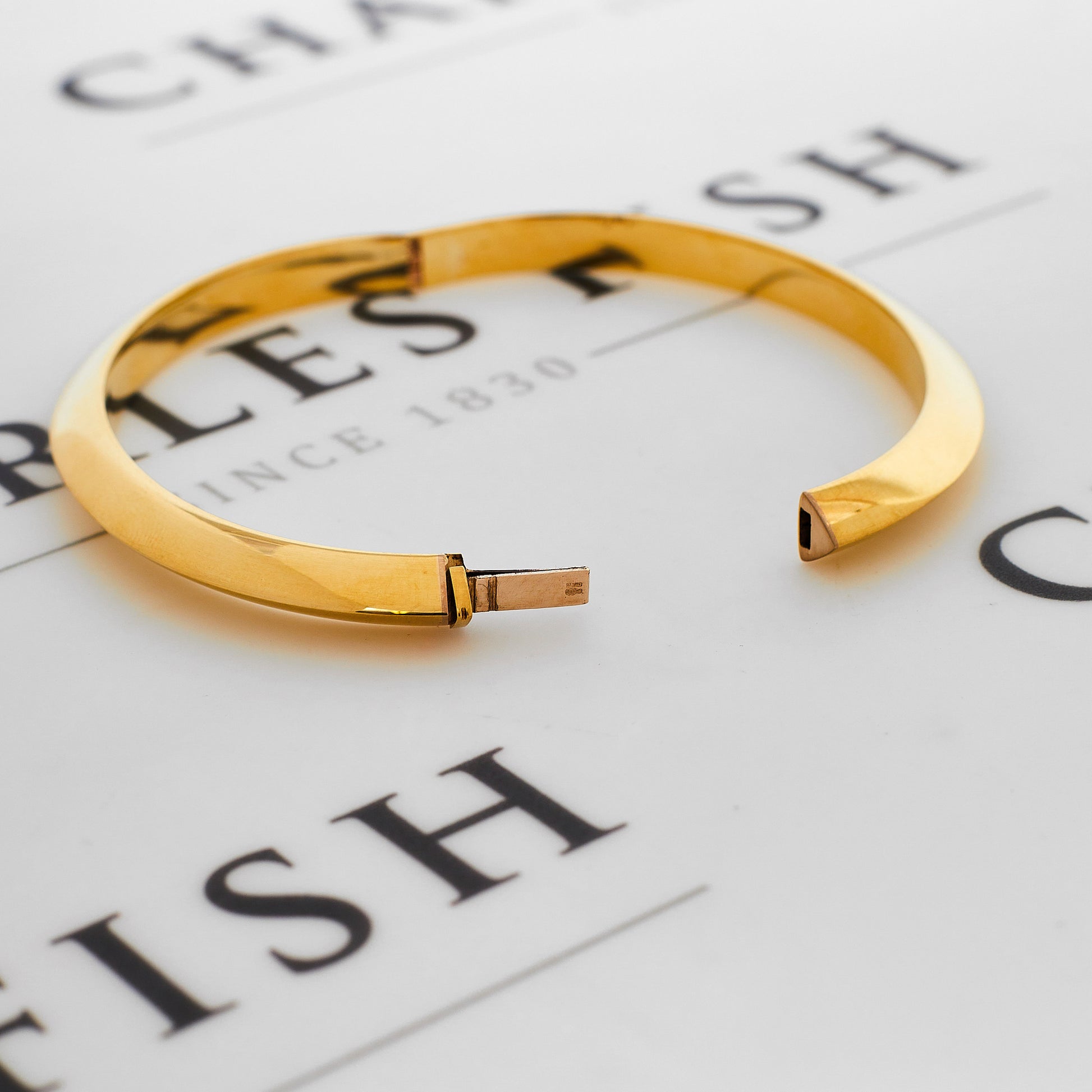 Refined and versatile, this elegant 9ct gold bangle, featuring a knife edge design for a contemporary look, is the perfect piece to add to your daily jewellery rotation. Wear it every day to add a touch of glamour to any outfit. Pre-owned, sustainable, and a unique listing, we predict this treasure will go fast. If you love it, don’t delay: make it yours before it's gone for good. DETAILS: This refined hollow hinged bangle measures 69mm x 62mm, is 6mm wide, has a push tongue closure and weighs 12.2 grams. We take great care to ensure our pre-owned jewellery pieces are carefully polished to the highest standard so they look as good as new. This second-hand item comes with a certificate of authenticity and eco-friendly packaging, ensuring customers can be confident in the value of their new purchase.