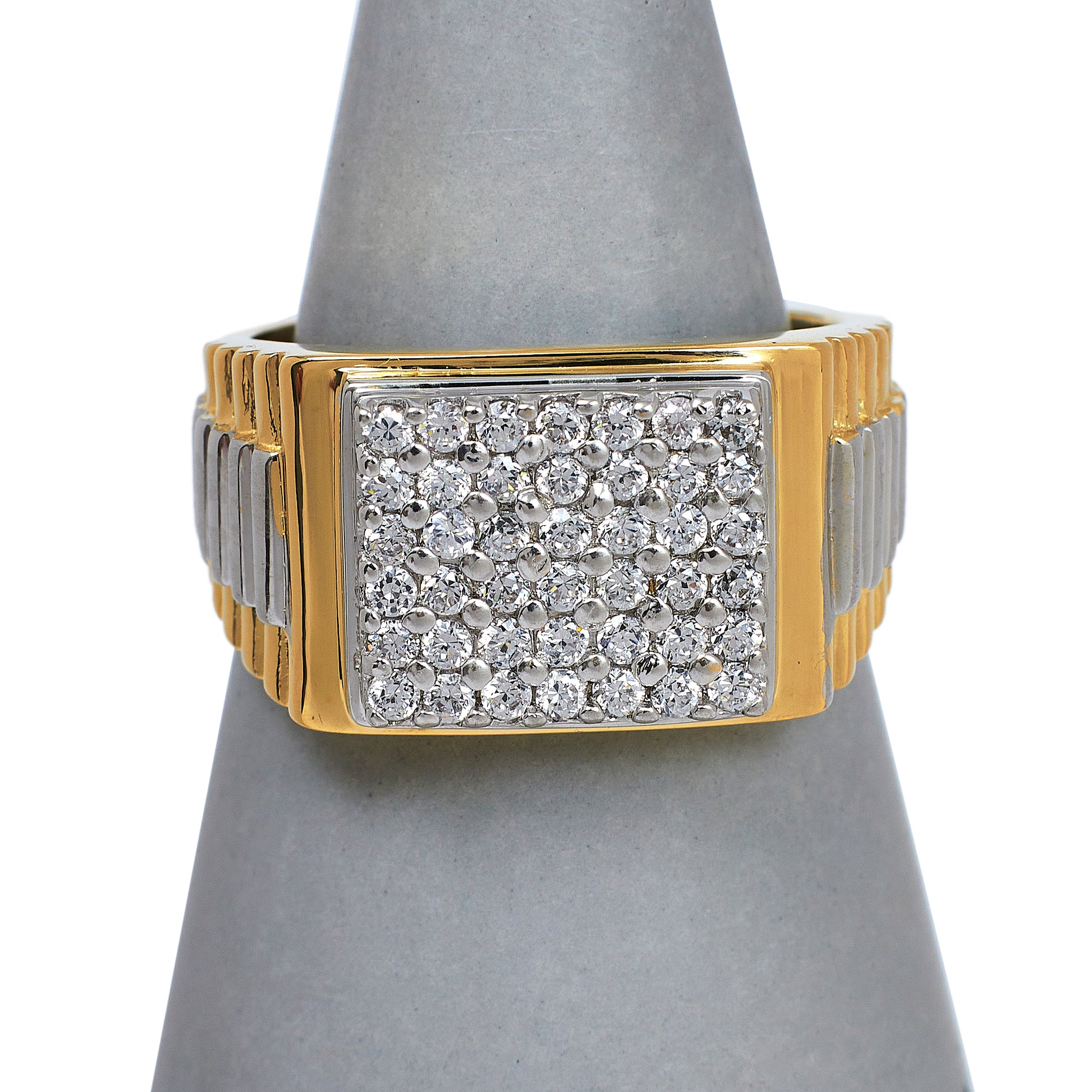 Pre-Owned 9ct Gold Mens 2 Tone CZ Square Signet Ring Size Y