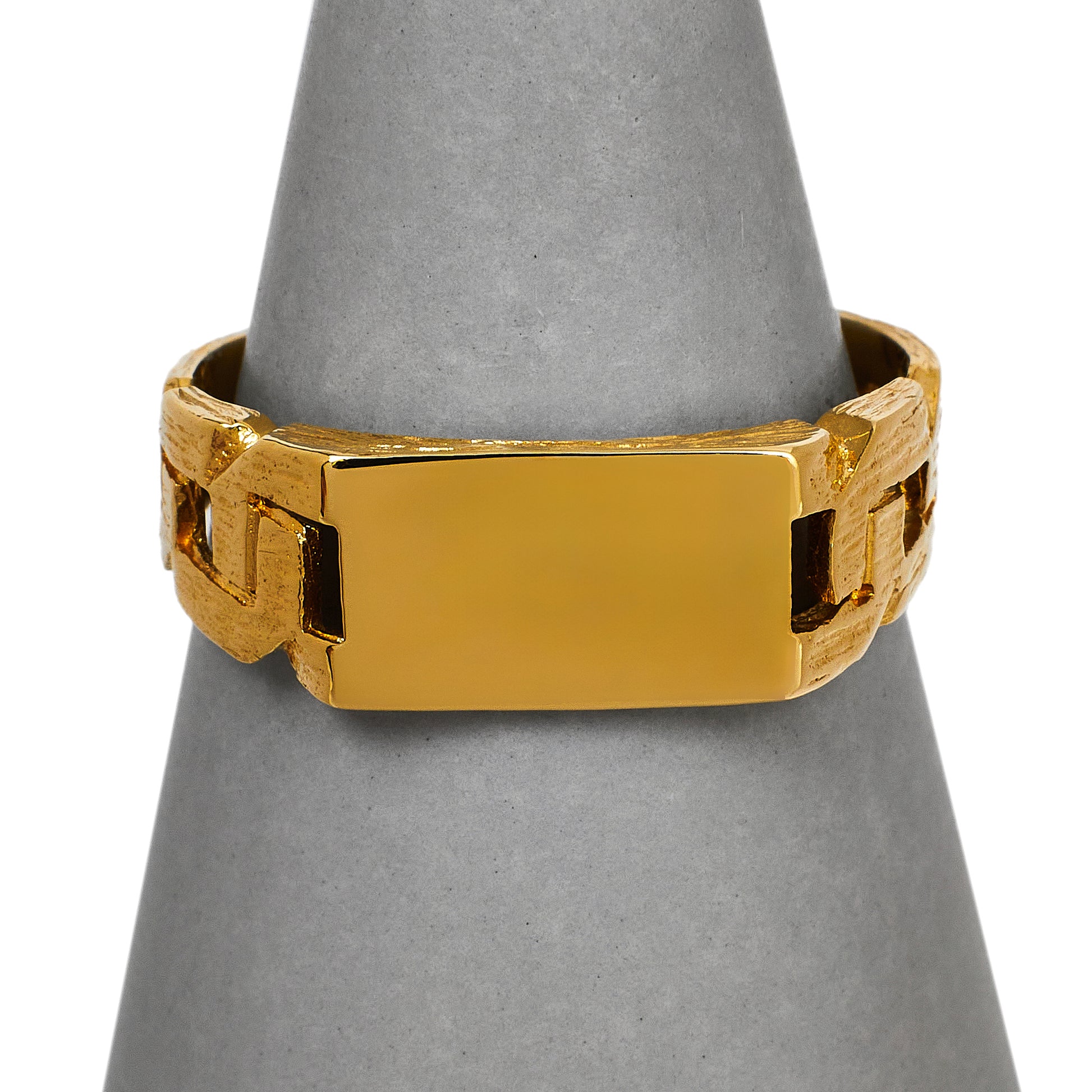 Pre-Owned 9ct Gold Rectangle Signet Ring & Curb Link Sides