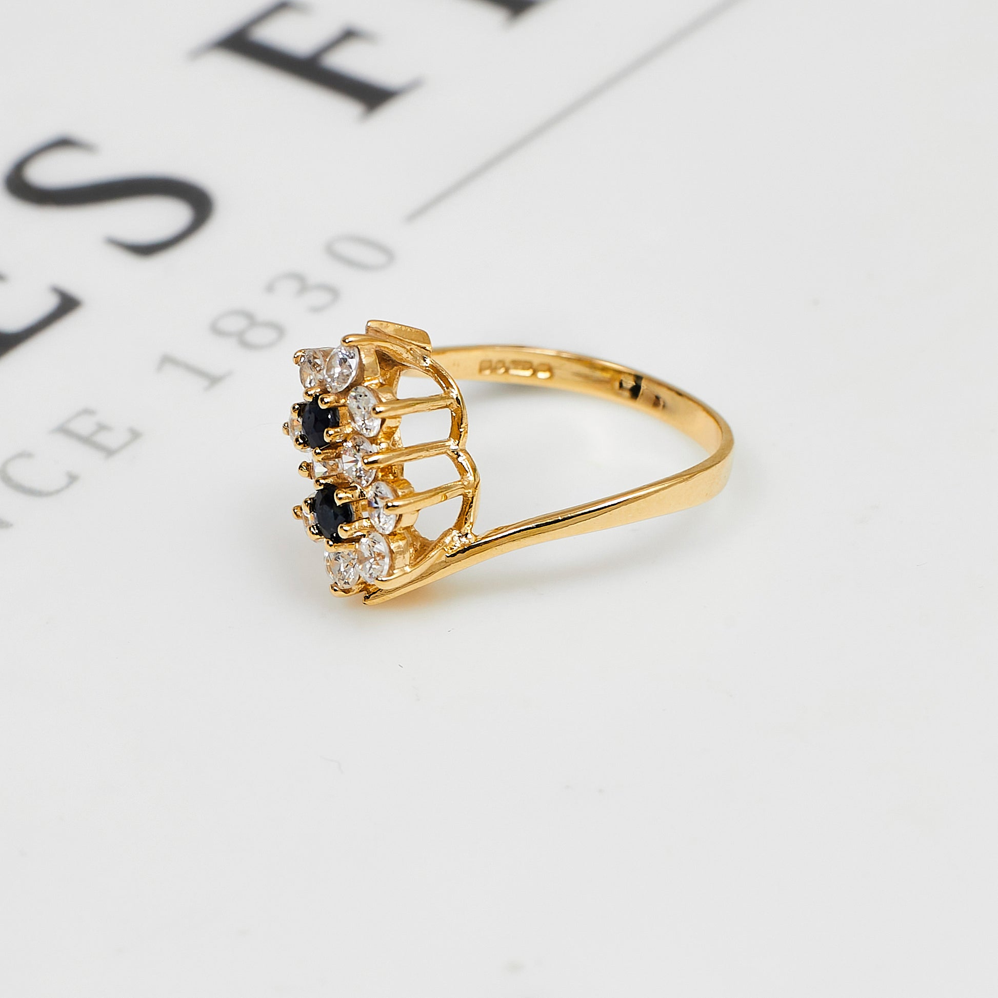 Pre-Owned 9ct Gold Sapphire & CZ Double Cluster Ring Size K.5