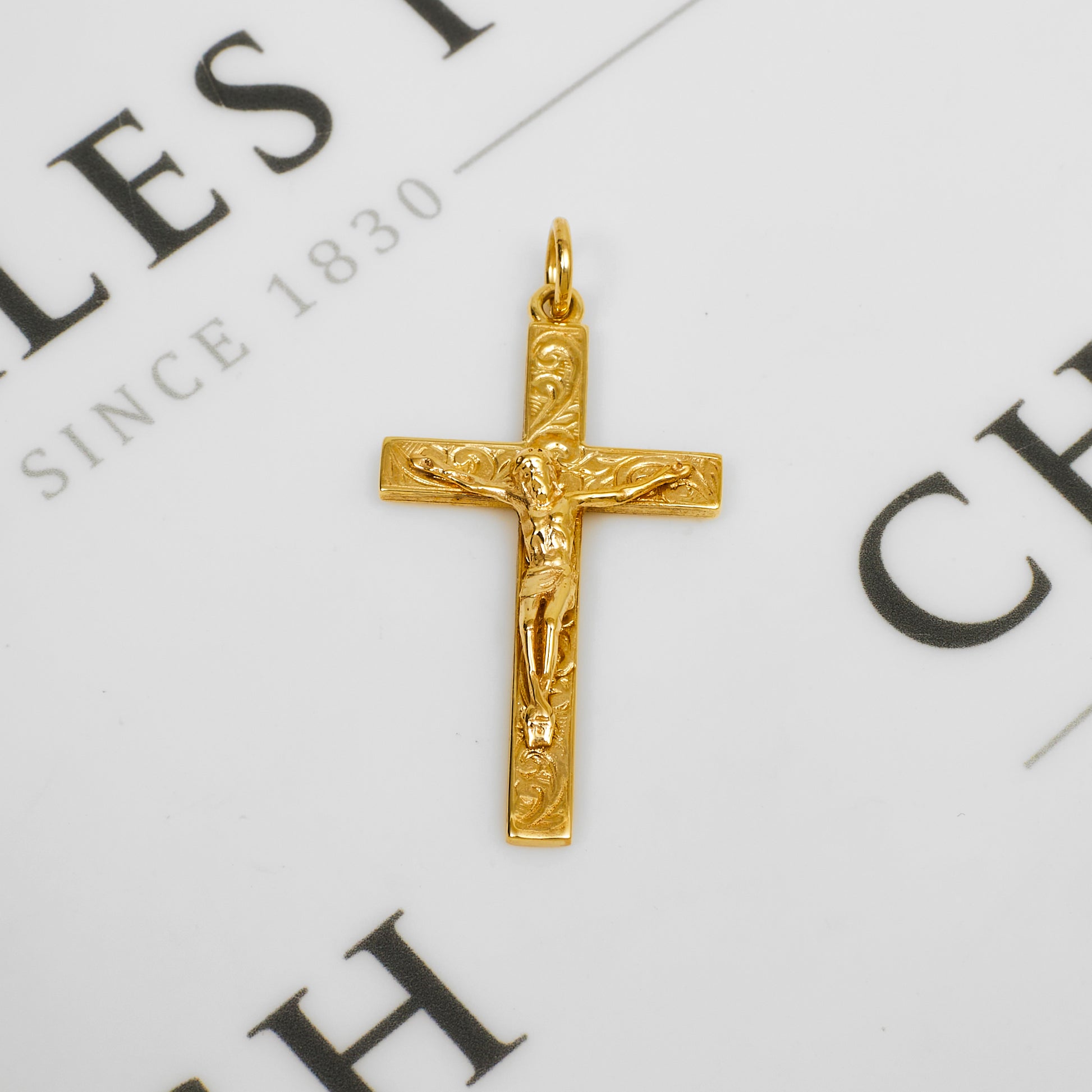 Pre-Owned 9ct Gold Swirl Design Crucifix Pendant