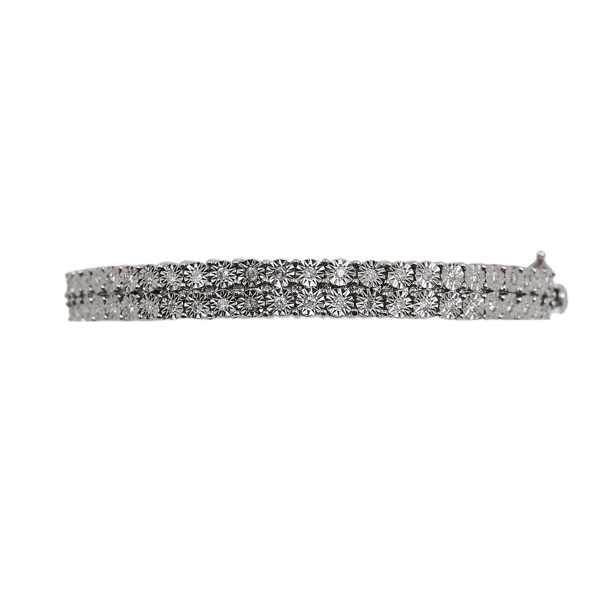 Pre-Owned 9ct White Gold Diamond Hinged Bangle