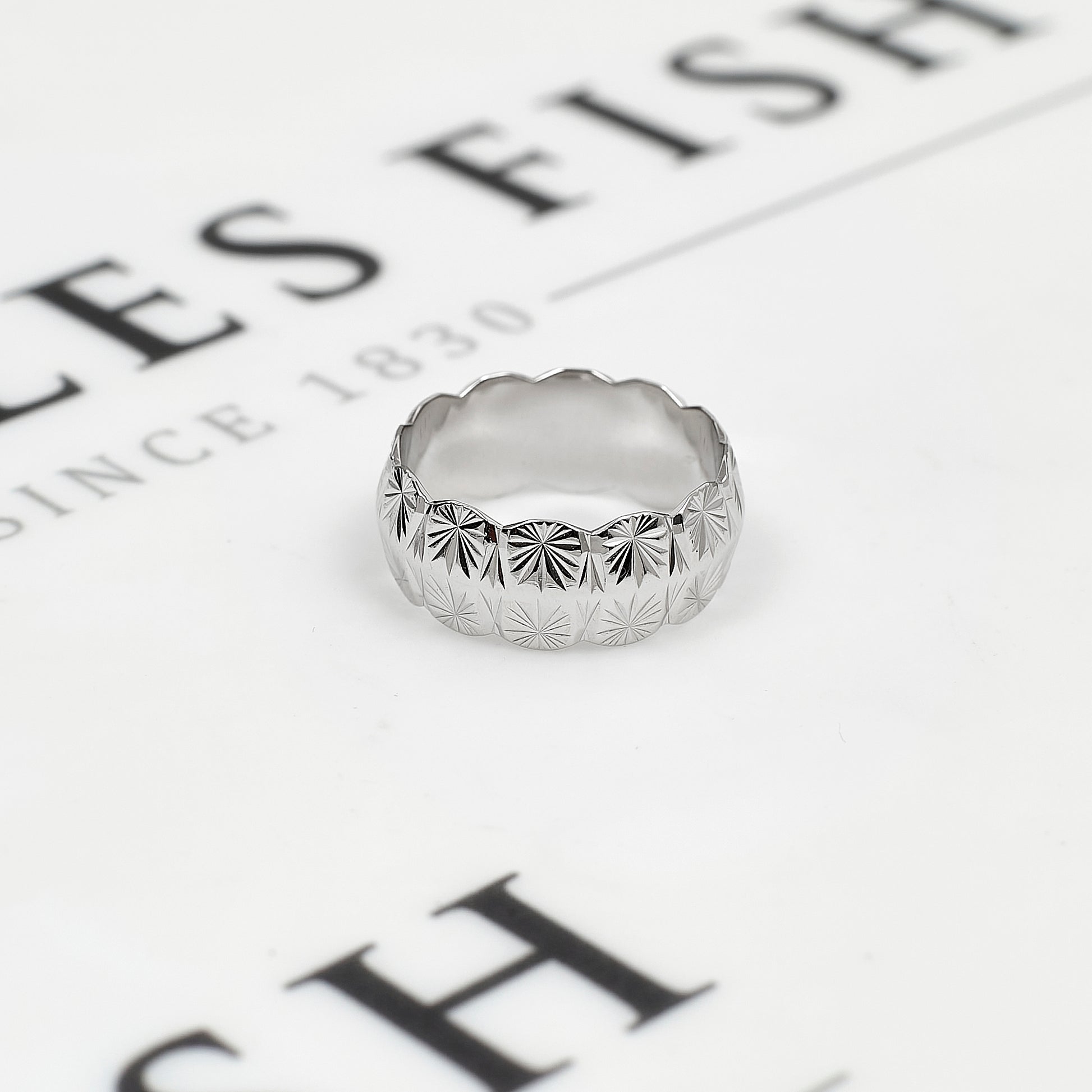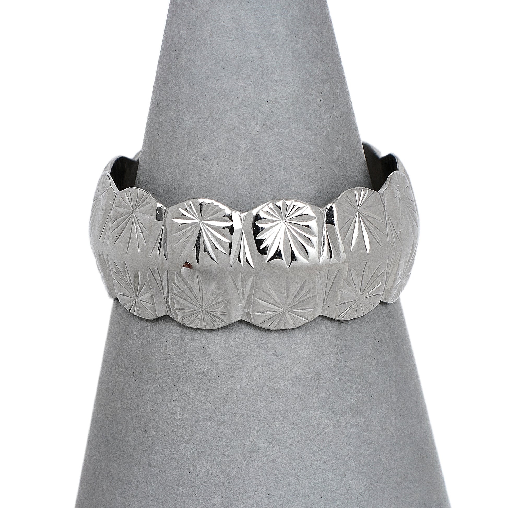 Pre-Owned 9ct White Gold Star Design Scallop Edge Band Ring